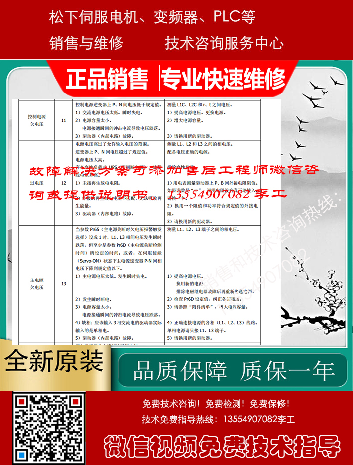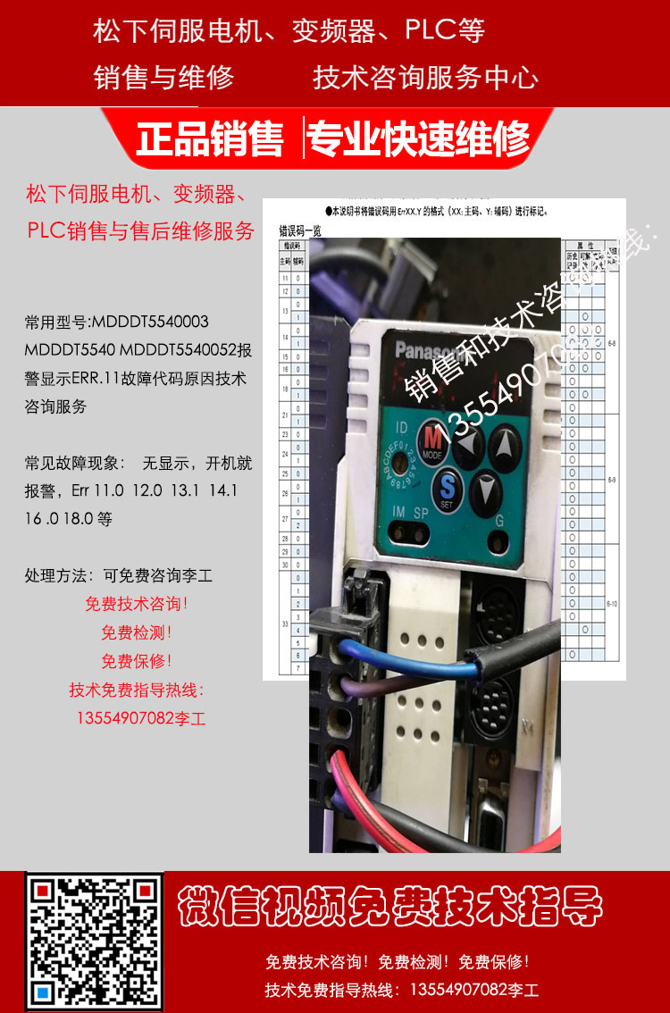 松下伺服驱动器报警err11说明伺服驱动器的电源电压不足。