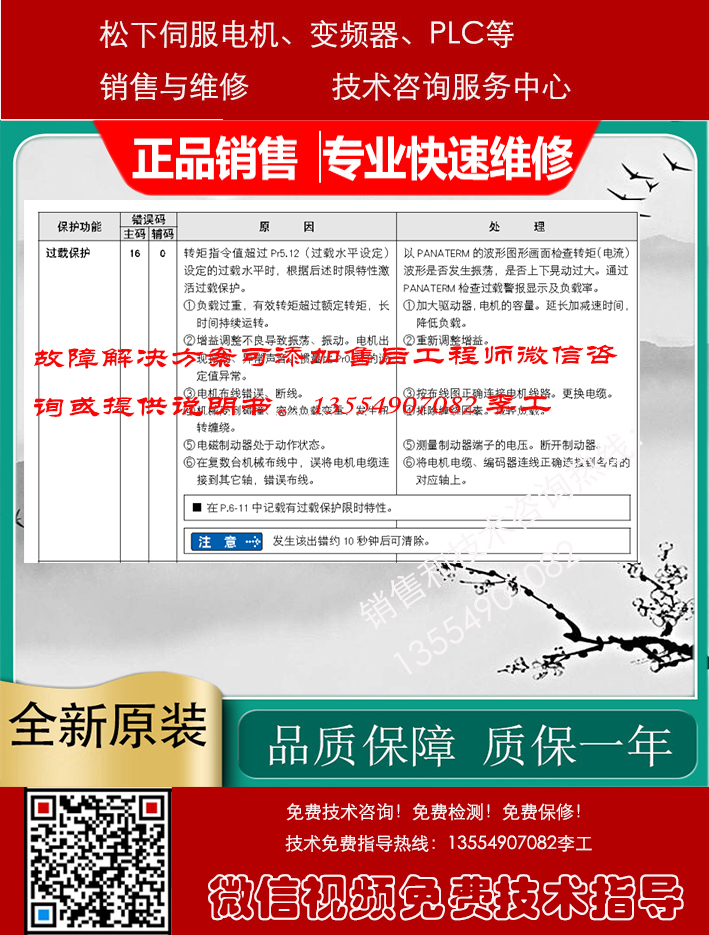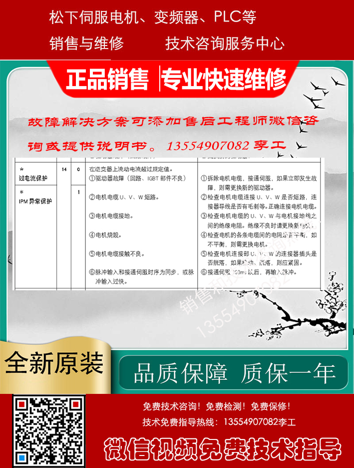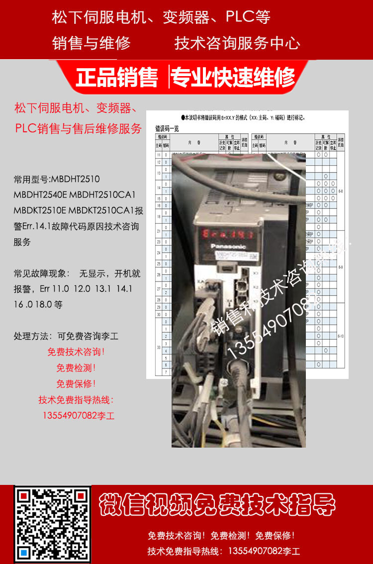 Panasonic松下伺服驱动器、伺服电机、变频器、PLC、触摸屏销售与售后咨询维修服务中心,专业提供Panasonic松下数控产品的销售维修服务,包括: Panasonic松下伺服电机,Panasonic松下伺服驱动器, Panasonic松下变频器,Panasonic松下PLC触摸屏等及其它配件。