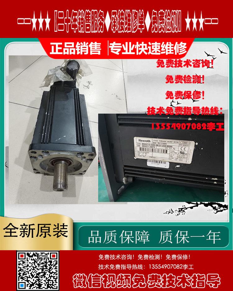 维修故障:磁铁爆钢、磁铁脱落、卡死转不动、编码器磨损、码盘/玻璃盘磨损破裂、电机发热发烫、电机进水、电机运转异常、高速运转响声、噪音大,刹车失灵、刹车片磨损、低速正常高速偏差、高速正常低速偏差、启动报警、启动跳闸、过载、过压、过流、不能启动、启动无力、运行抖动、失磁、跑位、走偏差、输出不平衡、编码器报警、编码器损坏、位置不准、一通电就报警、一通电就跳闸、驱动器伺服器报警代码、烧线圈绕组、航空插头损坏、原点位置不对,编码器调试/调零位、更换轴承、轴承槽磨损、转子断裂,轴断裂、齿轮槽磨损等。