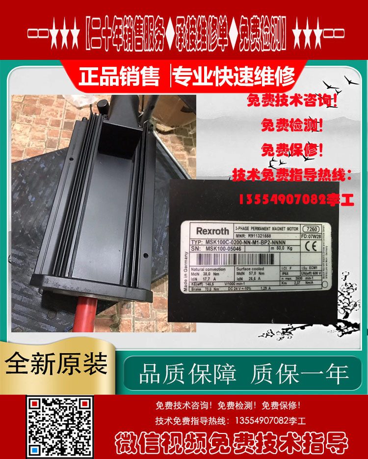 R911317417 MSK100C-0200-NN-M2-BG0-RNNN 专业德国博世力士乐Rexroth伺服电机编码器进油且报警维修-维修视频