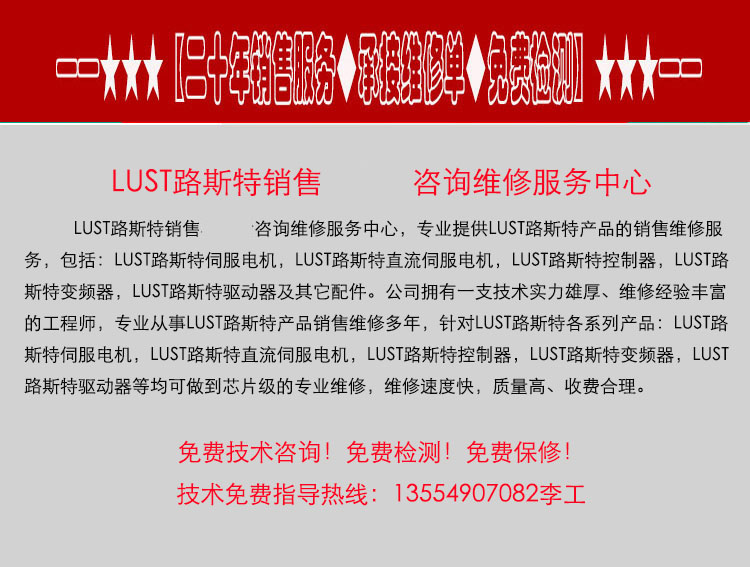 LUST路斯特伺服驱动器、伺服电机、直流伺服电机销售与售后咨询维修服务中心