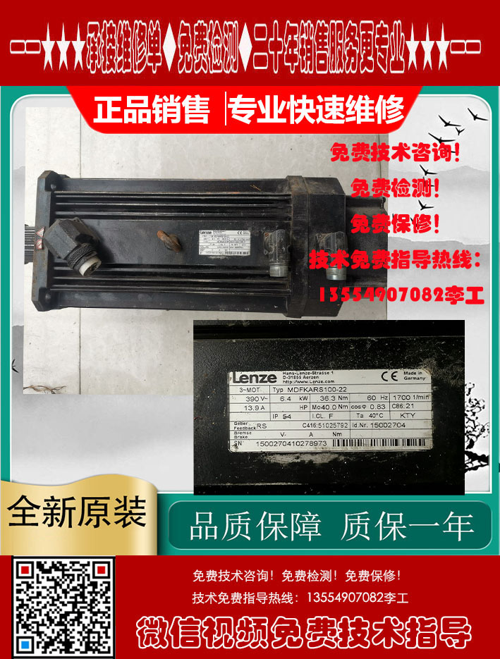 MDFKARS112-22 伦茨伺服电机销售-维修-刹车异响-线圈短路-对地漏电-漏水-泡水-怎么处理维修?