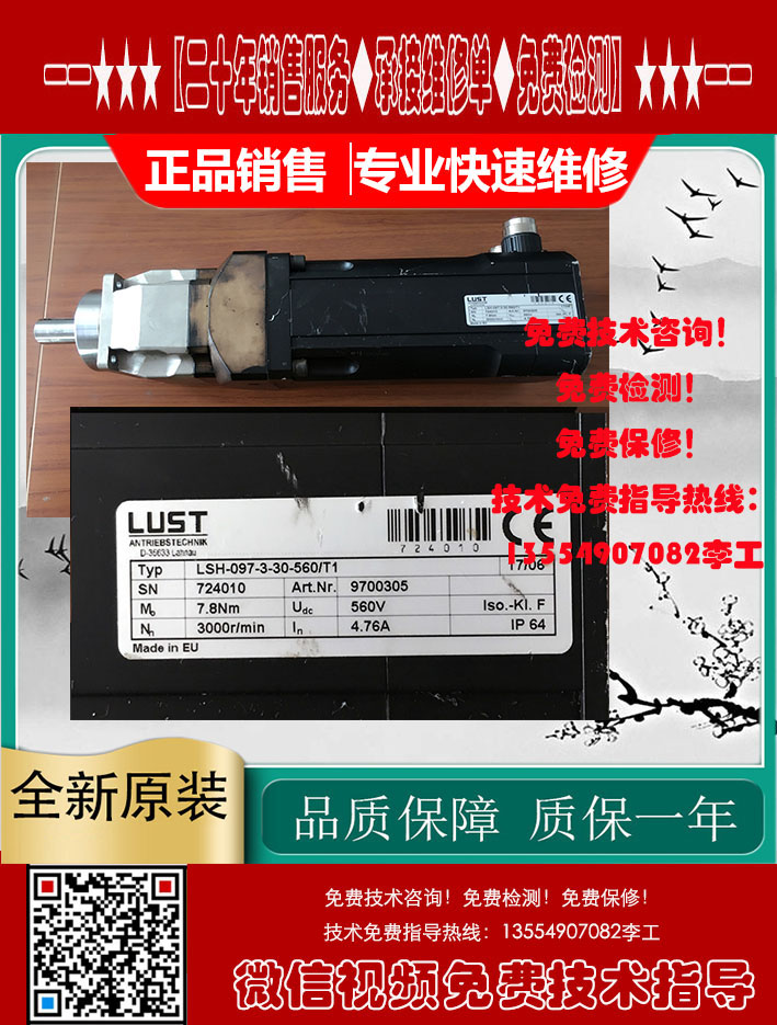 LSH-097-3-30-560/T1 LUST路斯特伺服电机销售-LTI路斯特伺服马达维修测试视频-线圈-磁铁-跑位-卡死-异响-噪音大-断轴