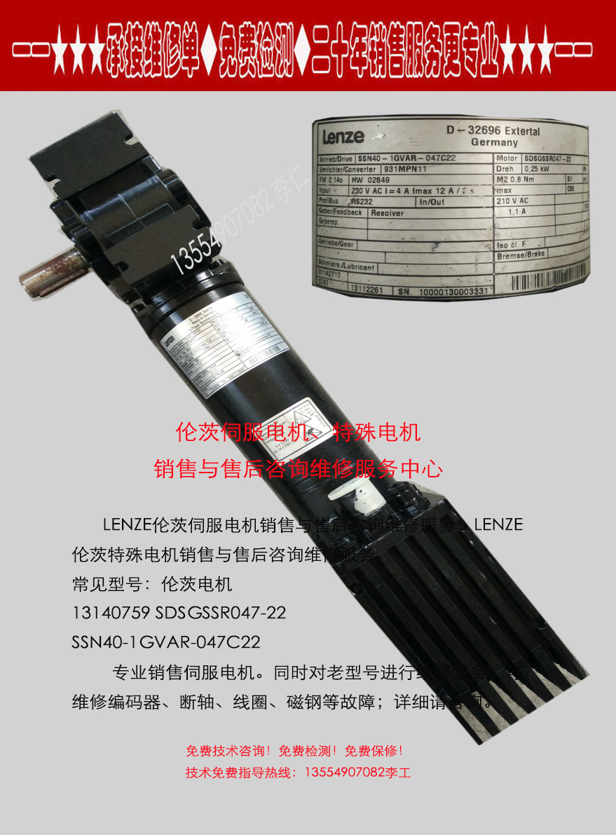SDSGAXX056-22 伦茨伺服电机 D-32699 维修 SSN40-1GHAR-056C22 卡死转不动故障维修SPL81-2NVCR SPL62-1NVCR