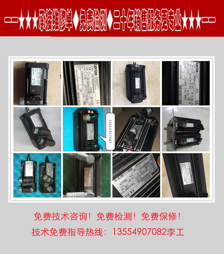 经过故障现象,通过仪器检测得出故障原因应该是Lenze伦茨伺服电机出现问题。有三个情况:一种情况是Lenze伦茨伺服电机出现问题,更换和维修Lenze伦茨伺服电机 ;一种情况是Lenze伦茨伺服驱动器问题,更换和维修Lenze伦茨伺服驱动器 ;三种是Lenze伦茨伺服电机和Lenze伦茨伺服驱动器都有问题,更换和维修Lenze伦茨伺服电机 。详细处理方法可以咨询专业维修服务-深圳市诚弘欣科技有限公司,李工13554907082微信同号。具体维修事例和细节可以为您解答。